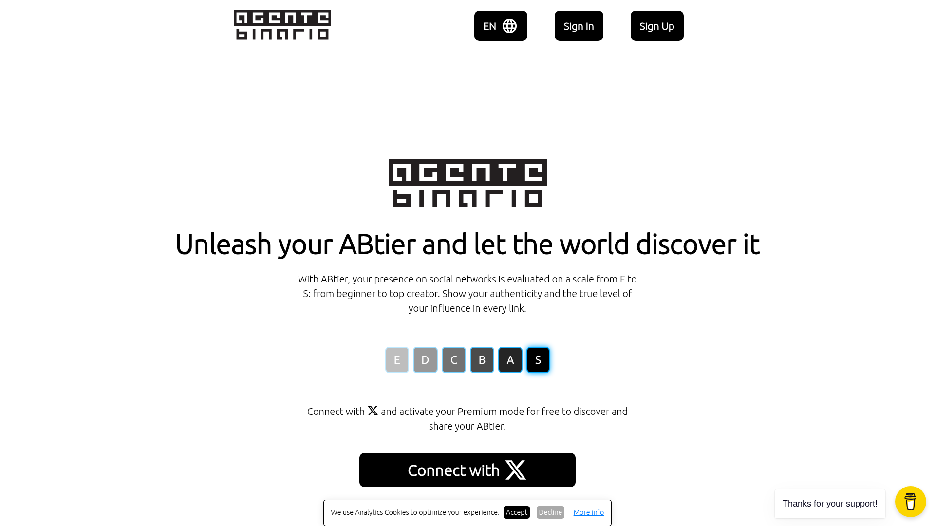 <h2>ABtier: Authenticate Your Social Influence</h2><p>ABtier is an innovative SaaS platform designed to evaluate and showcase your presence on social networks, assigning you an influence score from E (beginner) to S (top creator). It provides a unique way for individuals and creators to display their authenticity and the true level of their digital influence across various online platforms.</p><p>The primary purpose of ABtier is to empower social media users, content creators, and influencers to build trust and credibility by verifying their social accounts and presenting a consolidated, personalized online presence.</p><h3>Key Features</h3><ul><li><strong>ABtier Influence Rating:</strong> Get your social presence evaluated on a scale from E to S, quantifying your influence.</li><li><strong>Official Account Verification:</strong> Connect social media accounts via official logins to confirm rightful ownership and authenticity.</li><li><strong>Verified Link Display:</strong> Authenticated links are highlighted with a blue verification border, enhancing credibility.</li><li><strong>Premium Mode for Enhanced Verification:</strong> Instantly verify Twitter accounts with Premium, with YouTube, Facebook, Instagram, and TikTok verification coming soon.</li><li><strong>Customizable Link Page:</strong> Create a personalized link-in-bio page with freedom to choose style, background, order, and integrated networks.</li></ul><h3>Use Cases</h3><p>ABtier is ideal for content creators, influencers, and professionals who want to consolidate their online presence and demonstrate their credibility. Imagine a freelance designer showcasing their portfolio links, social profiles, and contact information all on one verified page, instantly conveying professionalism and authentic reach to potential clients. Similarly, a burgeoning YouTuber can use their ABtier to prove their growing influence and engagement to brands for collaborations.</p><p>This platform solves the common problem of fragmented online identities and the challenge of proving genuine social media engagement. By providing a verified, customizable hub for all digital links, ABtier helps users stand out in a crowded online space, making it easier for their audience, collaborators, or employers to discover and trust their authentic presence.</p><h3>Pricing Information</h3><p>ABtier operates on a freemium model, allowing users to get started and create a basic account for free. Users can also connect with and activate Premium mode for free to unlock additional features like Twitter account verification and access to a centralized dashboard for future platform integrations.</p><h3>User Experience and Support</h3><p>The platform emphasizes an "easy way" to get verified and offers "total freedom" in customizing your link page, suggesting a user-friendly interface. With options for visual backgrounds, light or dark themes, users can personalize their digital identity effortlessly. While specific documentation or direct support channels aren't detailed, the focus on ease of use implies an intuitive design.</p><h3>Technical Details</h3><p>The provided content does not specify the programming languages, frameworks, or underlying technologies used to build ABtier. However, it functions as a web-based SaaS, indicating standard web development practices.</p><h3>Pros and Cons</h3><ul><li><strong>Pros:</strong> Unique social influence rating, strong emphasis on authenticity and verification, highly customizable link-in-bio page, free entry point with valuable features, centralized dashboard for managing multiple social accounts (Premium).</li><li><strong>Cons:</strong> Limited platform verification in the free tier, "soon" for major platform integrations (YouTube, Facebook, Instagram, TikTok) means not all are available yet, no explicit mention of customer support or extensive documentation.</li></ul><h3>Conclusion</h3><p>ABtier offers a compelling solution for anyone looking to quantify, verify, and beautifully present their social media influence. By combining an innovative rating system with robust verification and customization options, it helps users elevate their digital presence and build trust.</p><p>Ready to show your best self online and discover your ABtier? Create your free account today and unleash your influence!</p>