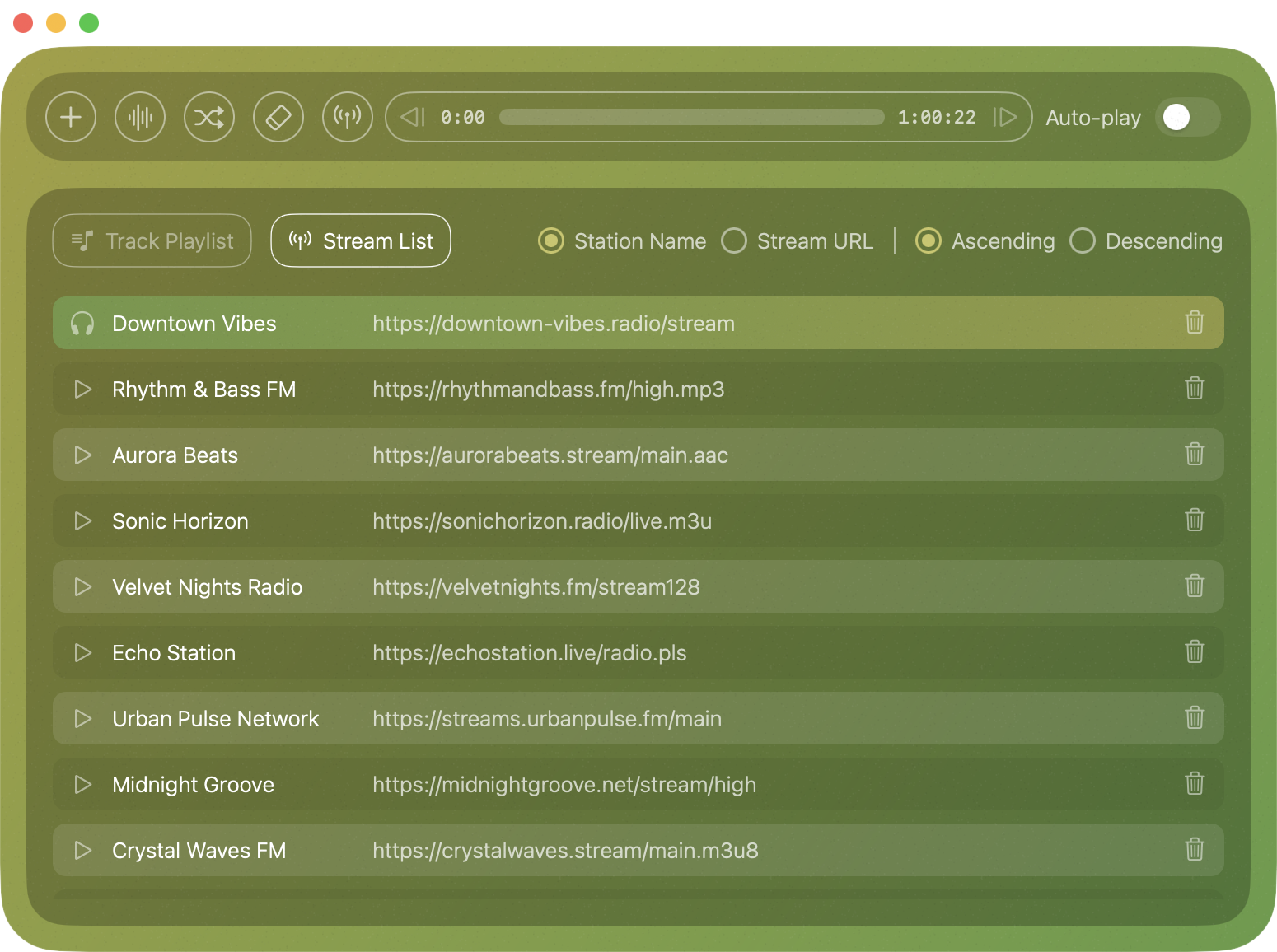 Internet radio streaming with M3U/PLS support
