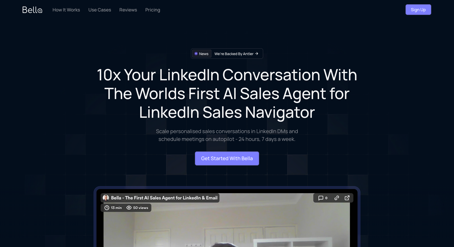 Bella is the world's first AI Sales Agent designed to revolutionize LinkedIn and email outreach. It autonomously books meetings for your business, operating at a fraction of the cost of a human sales representative.