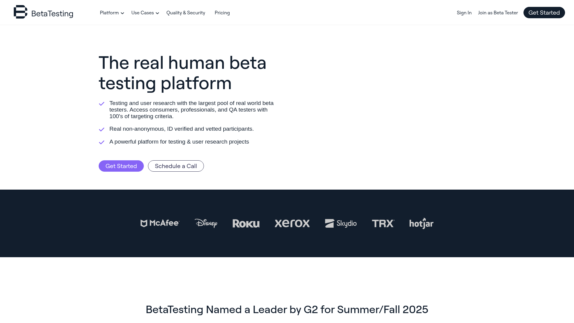 User Experience and SupportThe platform is described as powerful and designed for testing and user research projects, implying a robust and user-friendly interface. BetaTesting emphasizes strong customer support, with a team available to assist users. They offer expert help through their Professional plan, including test planning and execution assistance, and provide fully managed testing services for those requiring comprehensive support from start to finish.