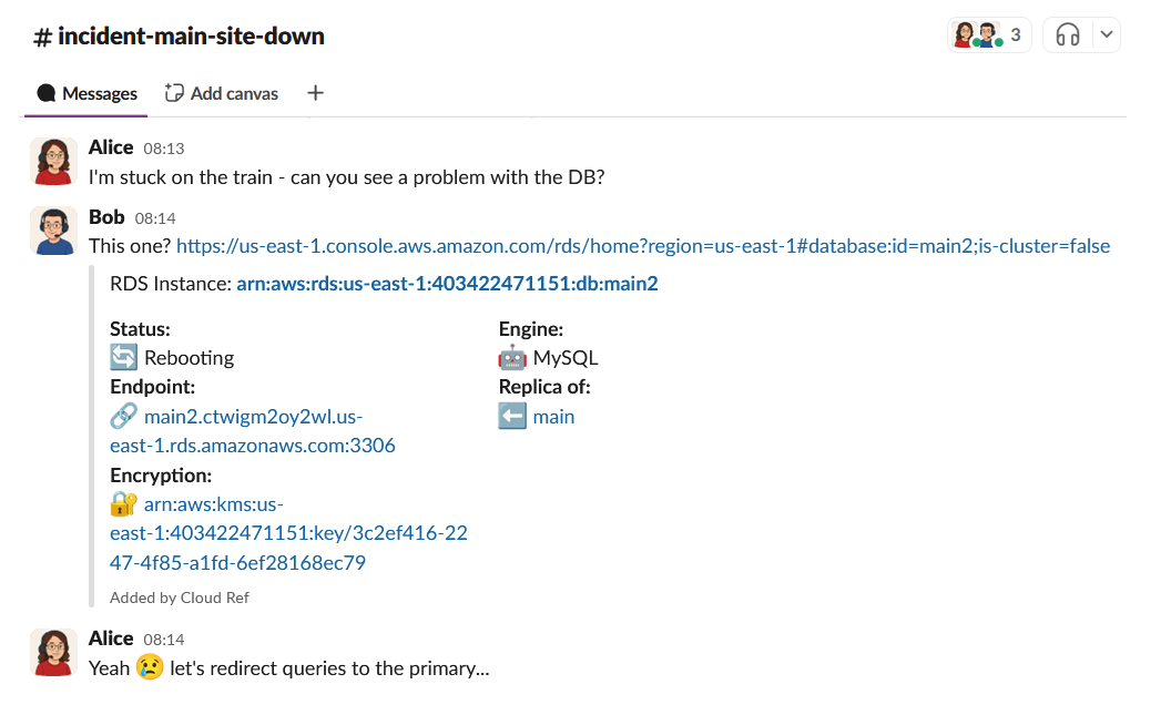 Cloud Ref provides rich link previews for AWS console links and ARNs in Slack - you get handy summaries of your AWS resources, as you discuss them, right in your Slack chat. Help your team get up to speed, deploy faster and solve issues sooner.