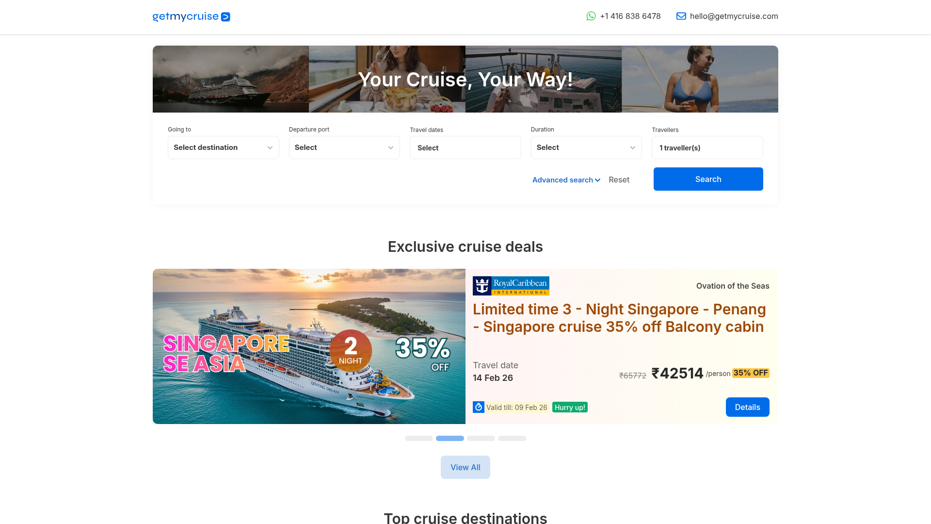 - Offers comprehensive cruise packages including flights, hotels, and visas.