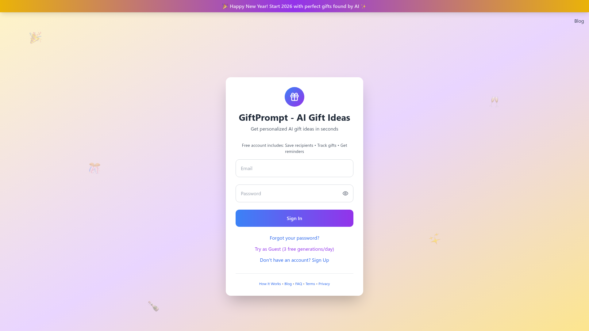 GiftPrompt is an innovative, AI-powered gift ideas generator designed to revolutionize the way people find presents. Unlike traditional tools that rely solely on demographics, GiftPrompt delves deeper, understanding personality traits and preferences to deliver truly personalized recommendations.