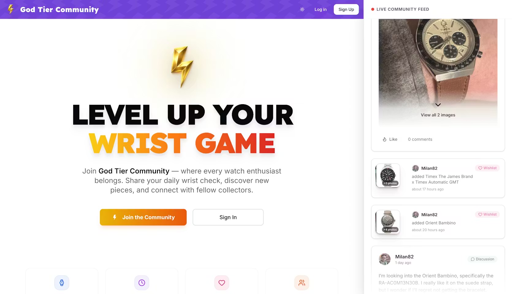 A digital community built for watch enthusiasts. Manage your collection, share daily wrist checks, track wish lists and grails, and connect with fellow collectors around the world.
