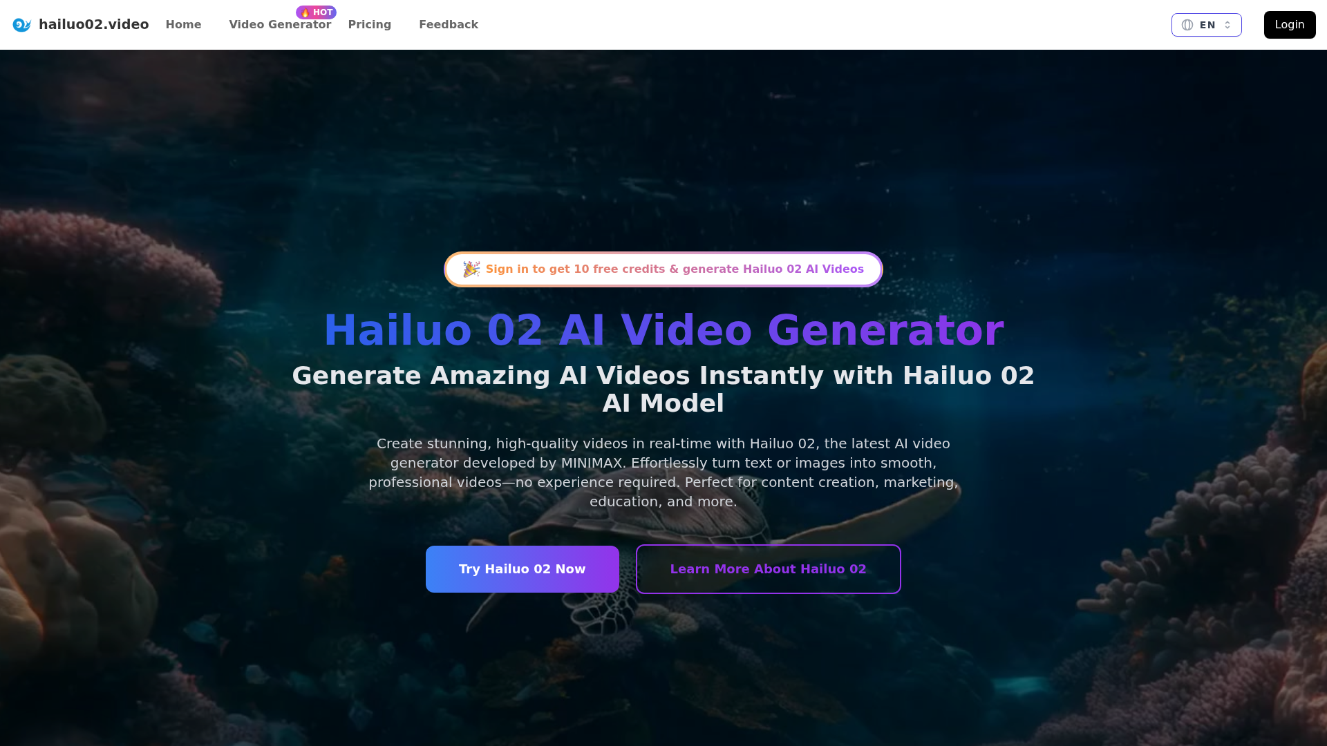 Hailuo 02 operates on a freemium model, offering 10 free credits upon sign-up to generate AI videos. Free users will have a watermark on their generated videos, implying paid options for full functionality.