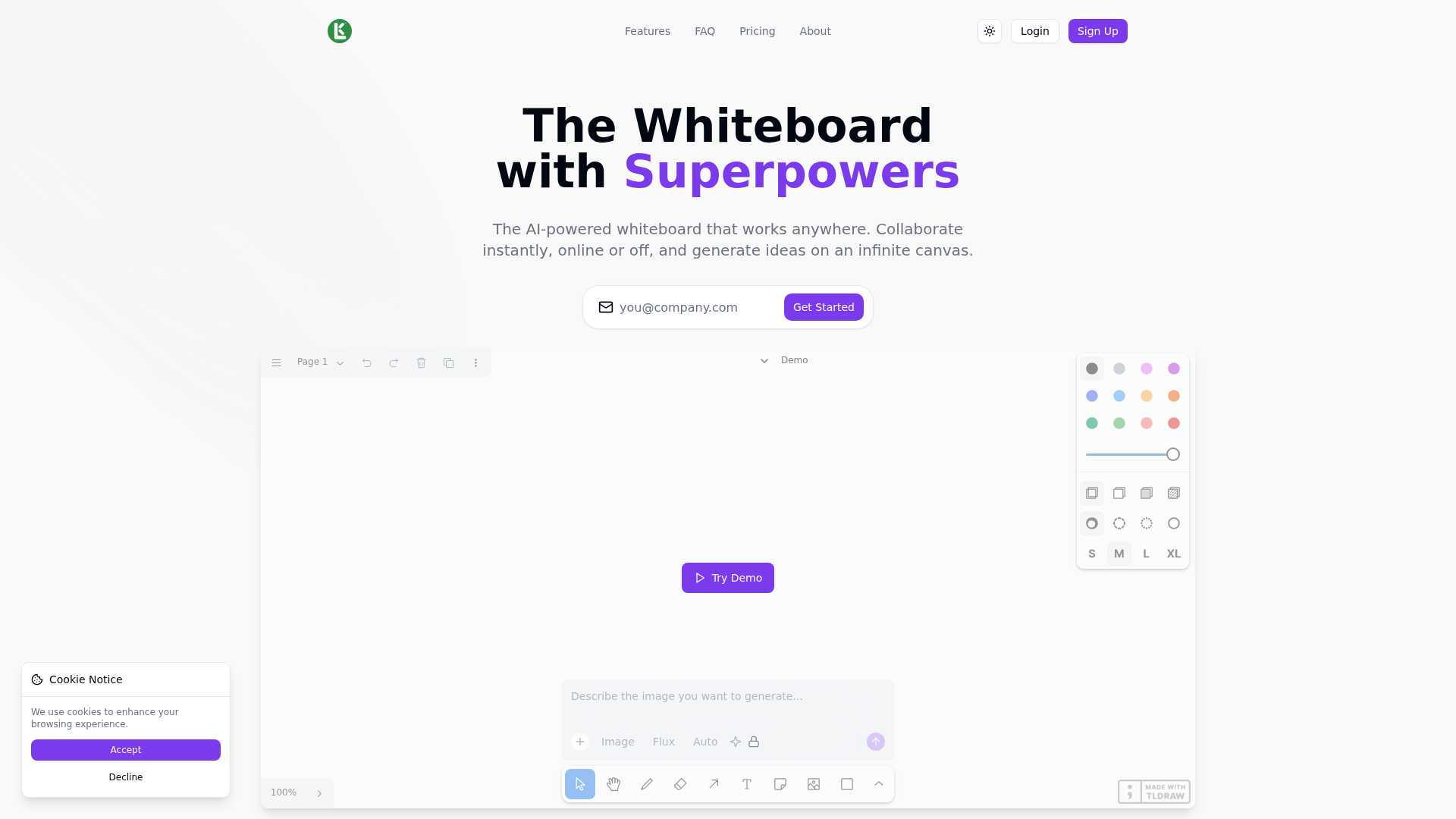 The platform boasts an intuitive and user-friendly interface, allowing users to "start drawing right away" without any login requirements. It is designed to be responsive and mobile-friendly, ensuring a consistent experience across all devices. Support is available through a comprehensive FAQ section, and users can contact the customer support team for further assistance.