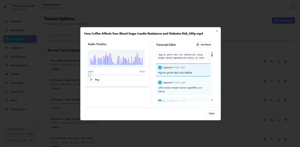 MegaTranscript is an advanced AI-powered SaaS designed to revolutionize audio and video content workflows. Its primary purpose is to provide a comprehensive suite of tools for creators and teams, encompassing high-accuracy transcription, subtitle generation, speaker diarization, text-to-speech (TTS), voice cloning, and vocal separation.