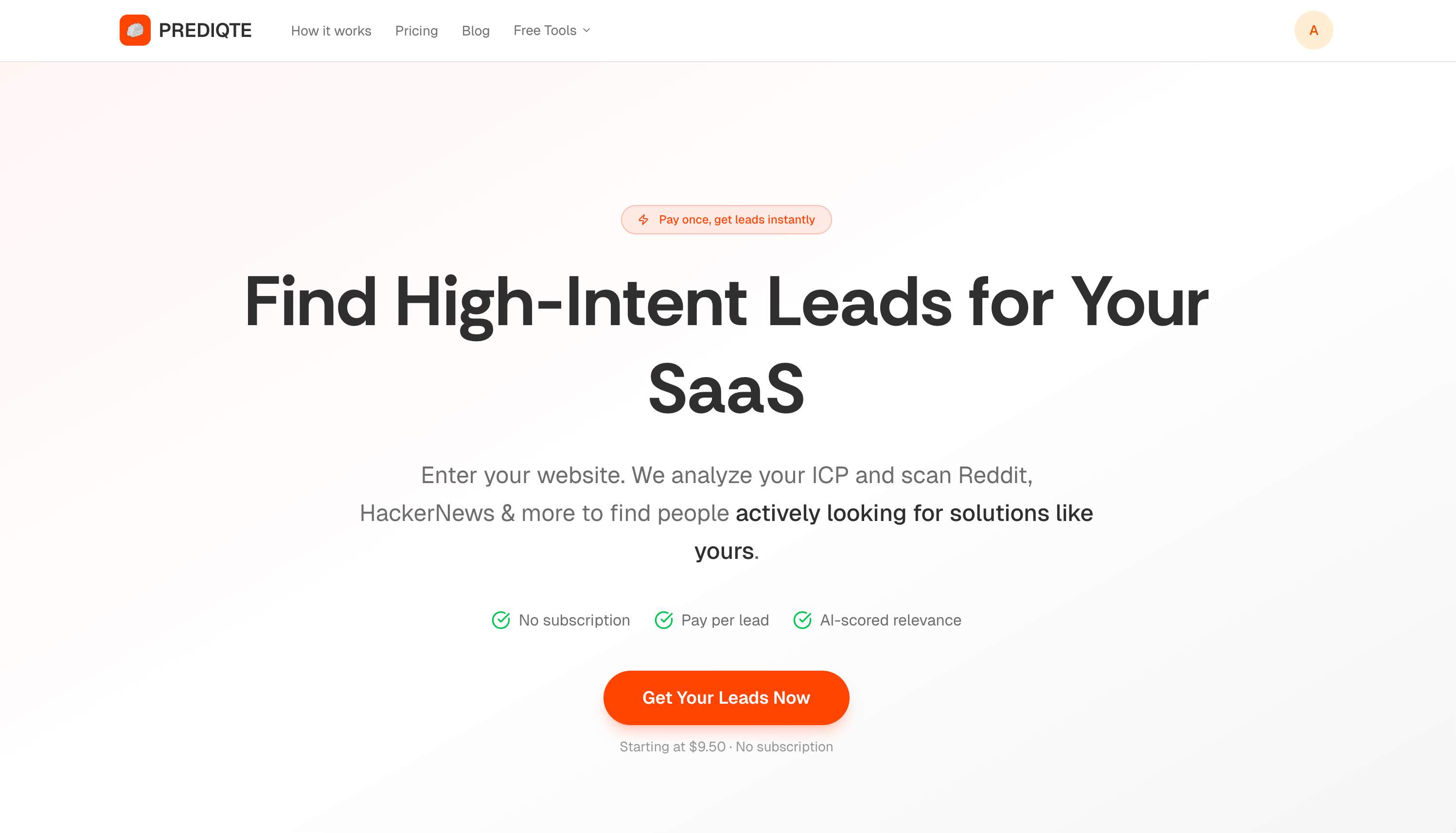 AI lead finder that scans Reddit & LinkedIn to find people actively looking for your SaaS. Pay per run. No subscription.