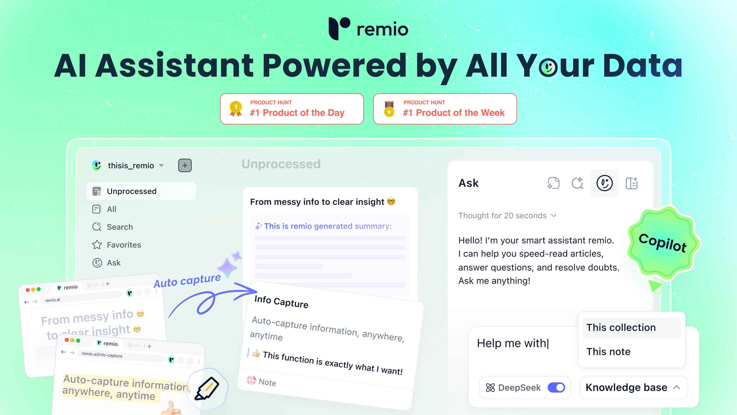 Introduction:remio is an AI-powered personal knowledge hub designed to help users efficiently collect, organize, and utilize information. It transforms "messy info" into "clear insights" by acting as an AI Second Brain and Assistant. This innovative SaaS is ideal for knowledge workers who handle large volumes of information, including managers, professionals, engineers, researchers, and students, aiming to enhance productivity and decision-making.