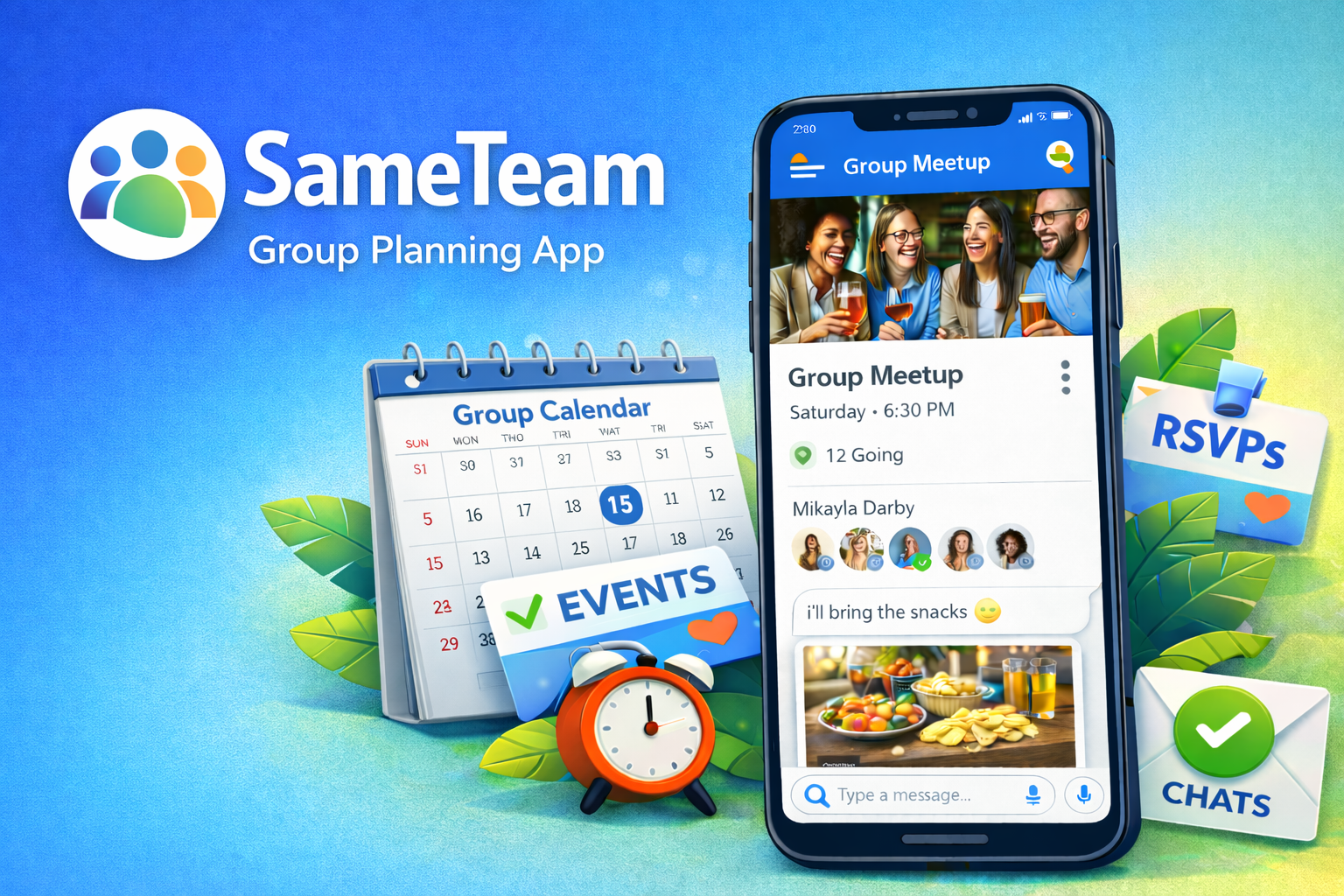 Plan events, track RSVPs, manage a private group calendar, and chat with your group—all in one free app.