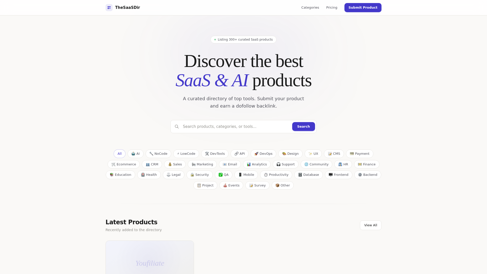 Key Features:- Extensive Curation: Features 300+ hand-picked SaaS and AI products, ensuring quality and relevance.