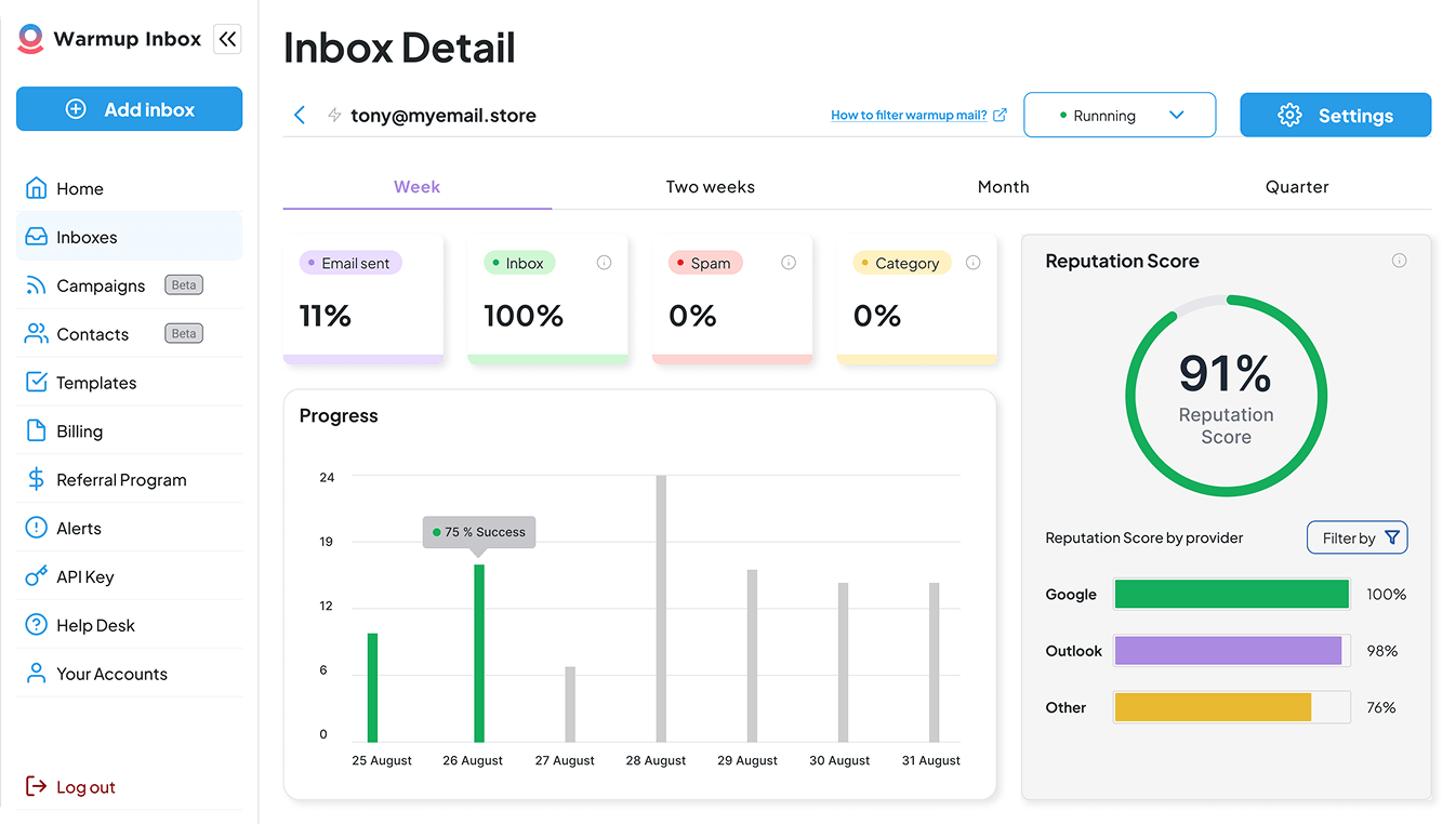 Warmup Inbox is a web-based platform that seamlessly integrates with major Email Service Providers (ESPs) including